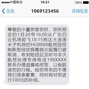 提醒:接到退改签电话或短信,一定要拨打航空公司官方电话核实情况。航空公司飞机因故不能起飞,也会给订票客户发送短消息,但不会让客户通过网银、支付宝等方式进行任何涉及钱款的交易。针对此次新型冠状病毒感染肺炎的疫情,国内多家航空公司及旅游公司都发布了应急预案和退改签办法,旅客可通过官方渠道咨询了解。