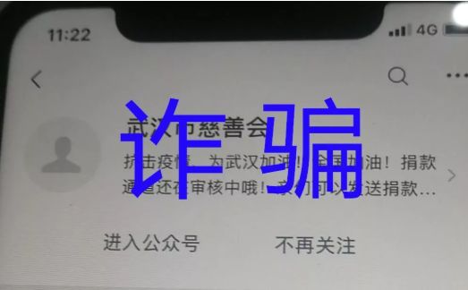 案例:1月27日,林先生通过微信找到一个叫“武汉市慈善会”的公众号,跟公众号后台联系后,对方发来二维码让林先生扫码转账捐款。然而令林先生意想不到的是,他给对方转去500元爱心捐款后,发现该“武汉市慈善会”的公众号已注销。林先生发现被骗后,马上拨打110报警。