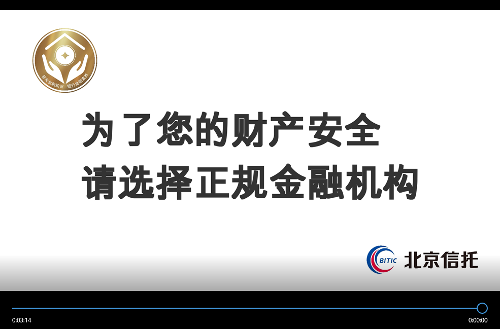 北京信托将持续提升金融服务质量,切实做好金融消费者权益保护和公众宣教工作,引导金融消费者依法理性维权,强化消费者金融安全意识,营造健康和谐的金融消费环境。