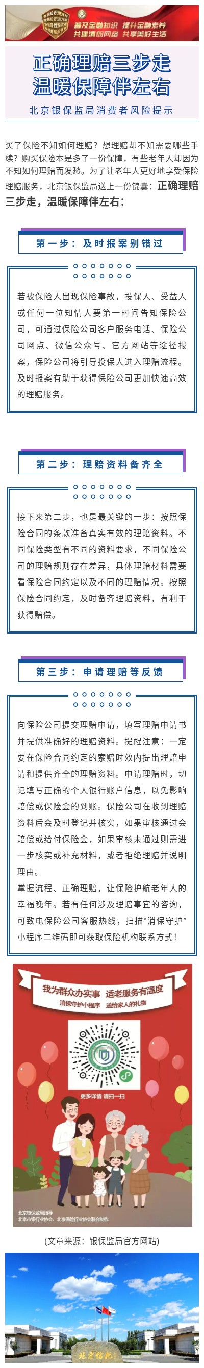 北京银保监局消费者风险提示: 正确理赔三步走 温暖保障伴左右