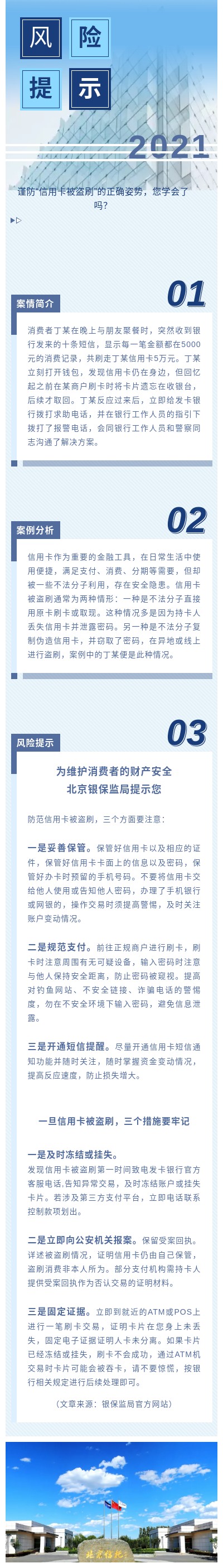 北京银保监局消费者风险提示:谨防“信用卡被盗刷”的正确姿势,您学会了吗?