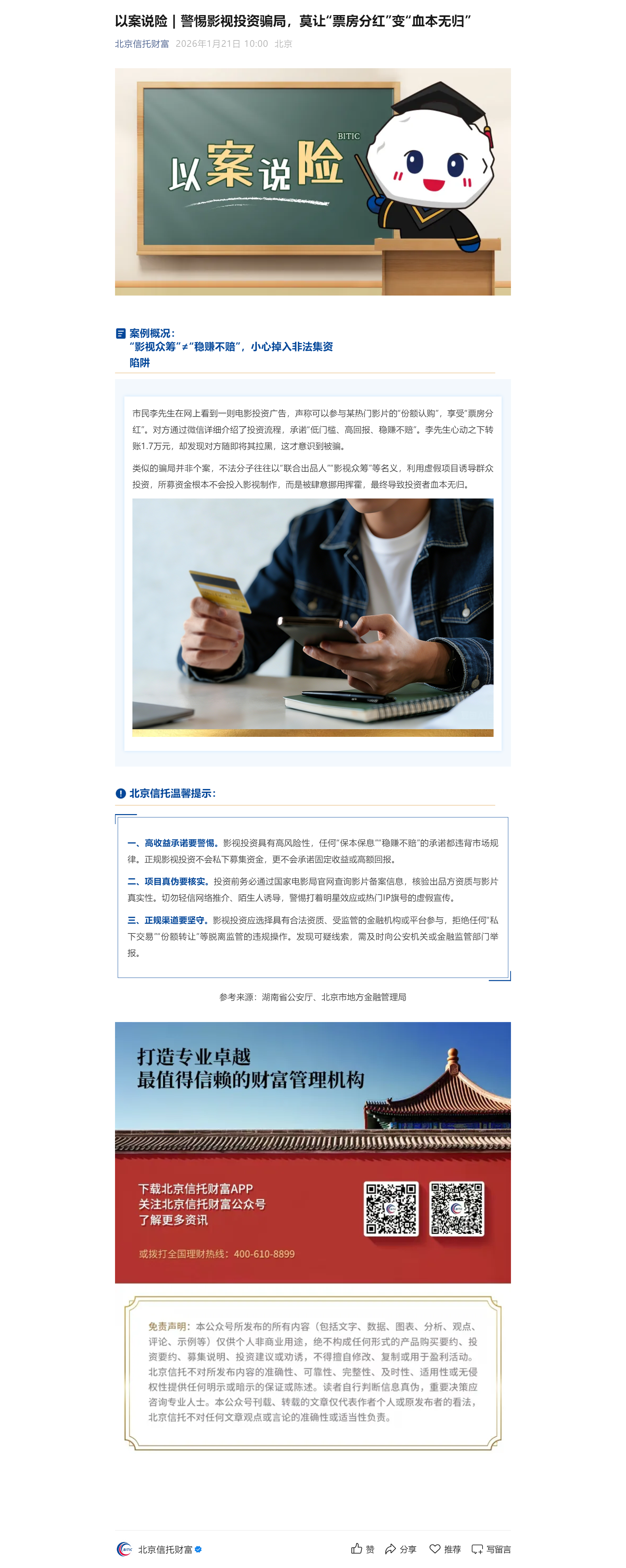 以案说险 | 警惕影视投资骗局,莫让“票房分红”变“血本无归”
