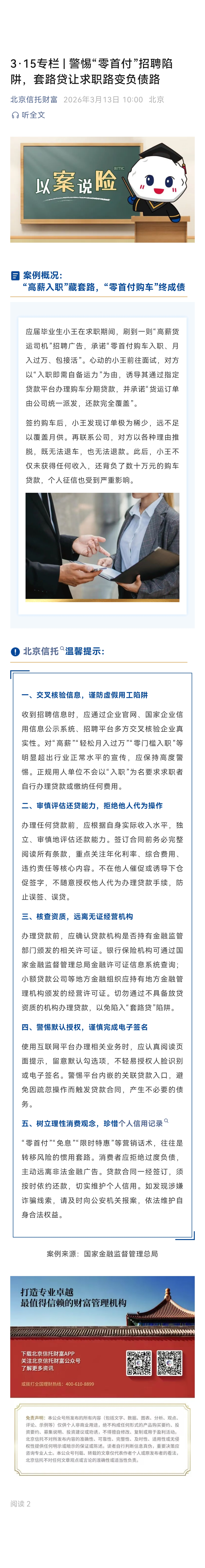 3·15专栏 | 警惕“零首付”招聘陷阱,套路贷让求职路变负债路