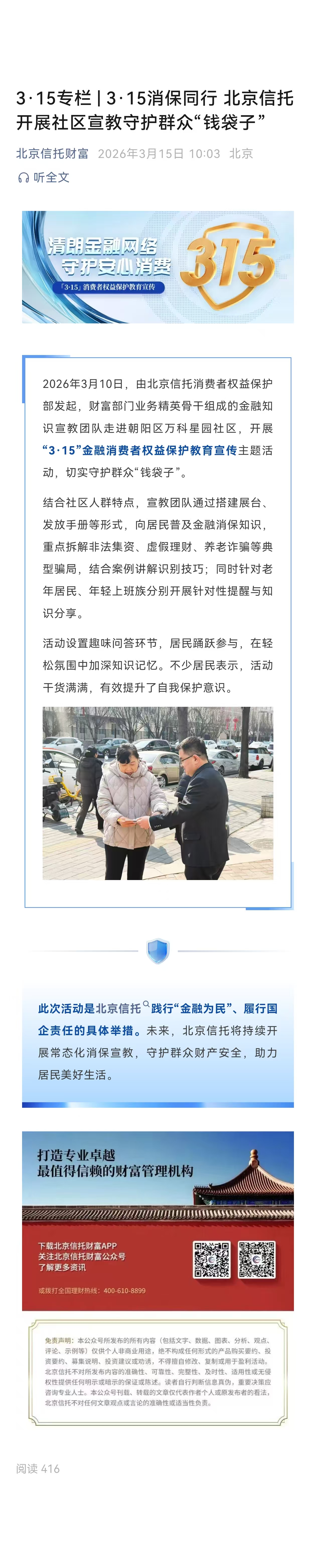 3·15专栏 | 3·15消保同行 北京信托开展社区宣教守护群众“钱袋子”